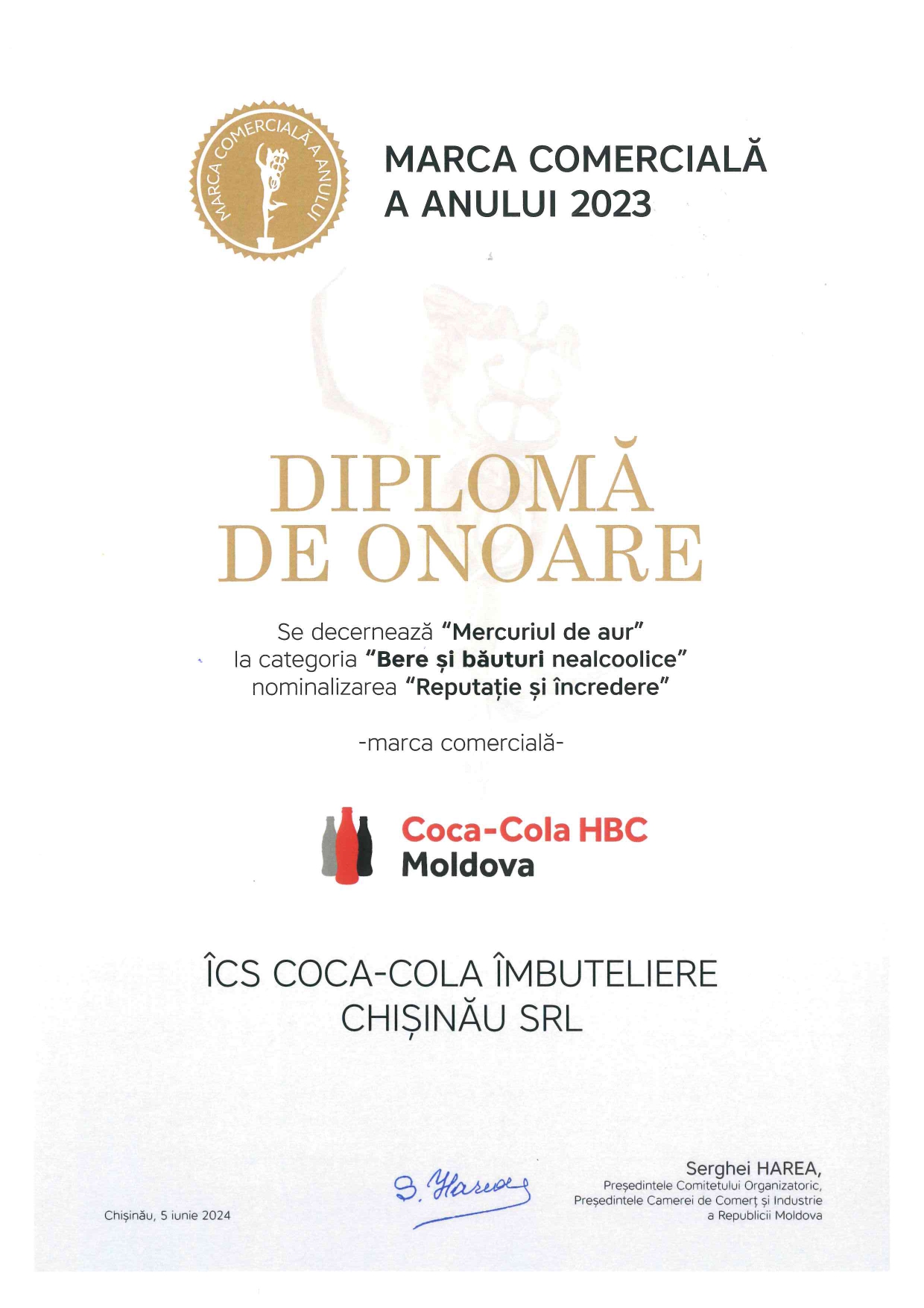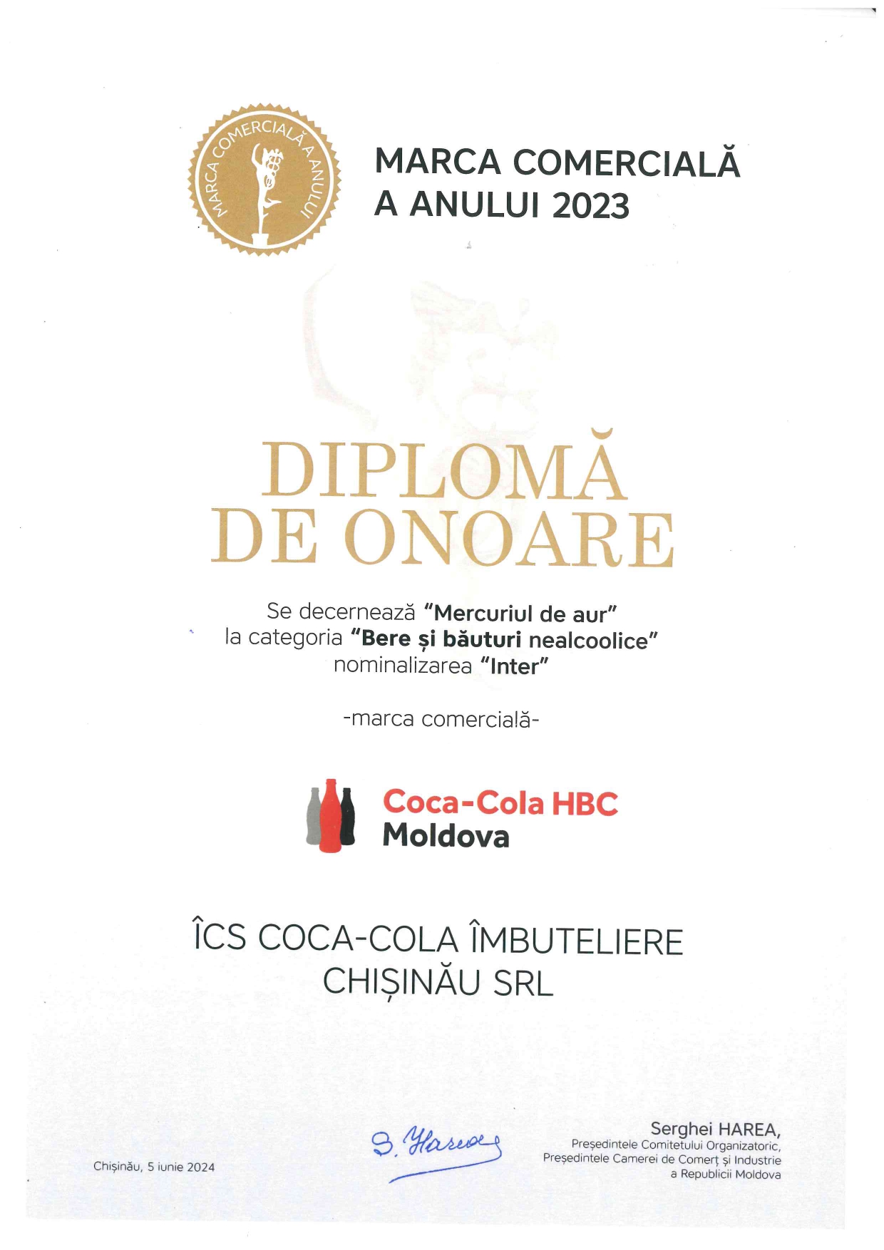 Coca-Cola HBC Moldova tinde să dețină unul dintre cele mai puternice și mai flexibile portofolii din industria băuturilor. Compania Coca-Cola HBC a intrat mai întâi pe piața din Moldova cu brandurile Coca-Cola, Fanta și Sprite. În cei 31 de ani de activitate în Moldova Coca-Cola HBC a devenit unul din liderii din industria băuturilor, oferind unul dintre cele mai puternice și diverse portofolii 24/7, concentrându-se pe satisfacerea nevoilor consumatorilor cu opțiuni mai sănătoase, variante premium și ambalaje sustenabile.